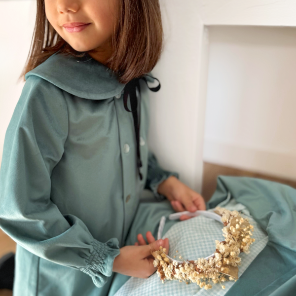 Confeccionada en terciopelo verde agua y con forro de algodón 100%
