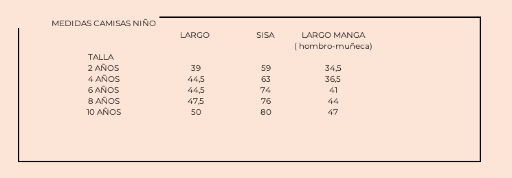 MEDIDAS CAMISAS NIÑO LOLA LIKES