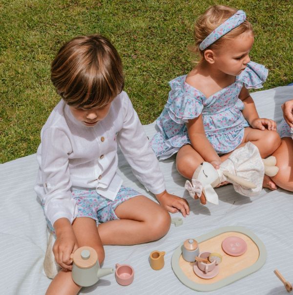 Viste hermanos conjuntados con el resto de prendas de la colección Nenúfar.