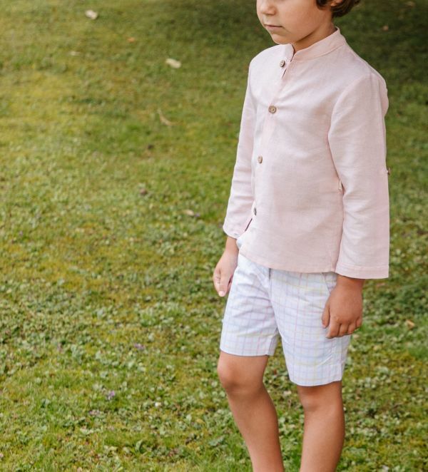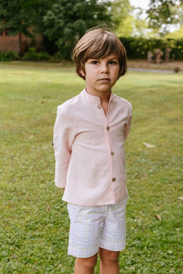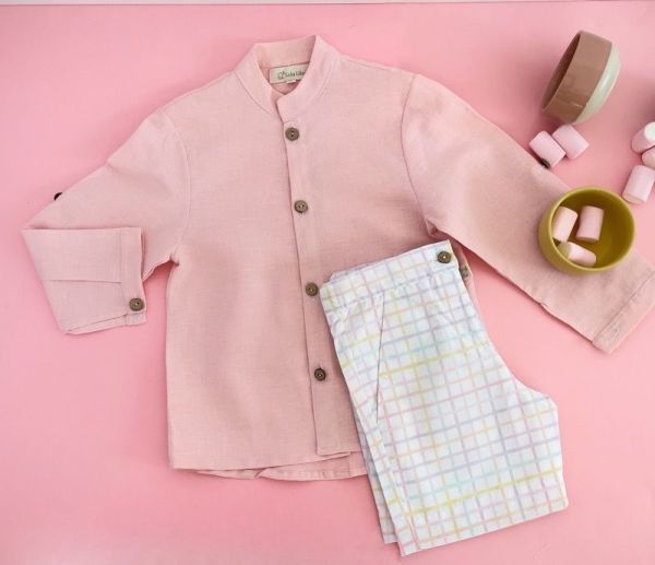Camisa para niño de lino rosa, hecho con algodón orgánico, muy suave y bonita.