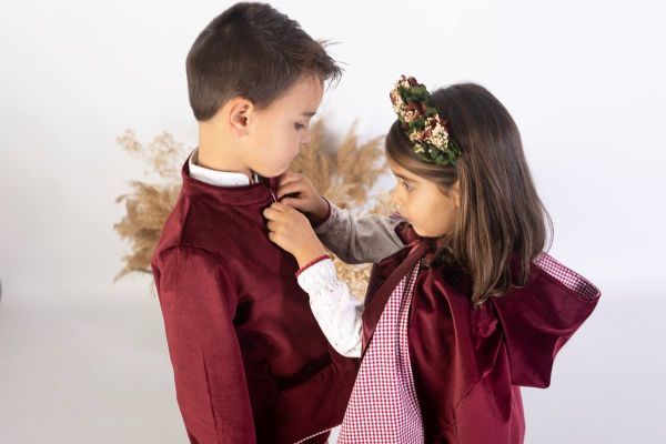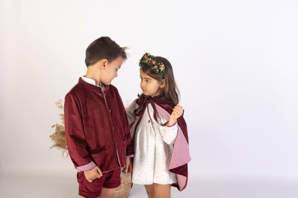 Esta chaqueta es una de las prendas de la colección Zora, en la que volvemos a vestir hermanos coordinados. Combina una villela de algodón orgánico estampado diseñado en exclusiva por Lola Likes, un vichy imprescindible cada otoño/invierno y un terciopelo de calidad irrenunciable, suave y elegante a más no poder. Una colección diseñada para las sesiones de fotos navideñas más especiales y para esos eventos con aire invernal. La temporada aw24 de Lola Likes, una de las más esperadas de la marca, llega cargada de novedades, como la posibilidad de vestir a mamás e hijos conjuntados, convirtiendo la marca en una apuesta sólida y de confianza en el mercado de la moda infantil.