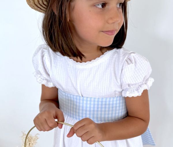 Combinación perfecta con el vestido blanco en Vichy de la colección Aleste