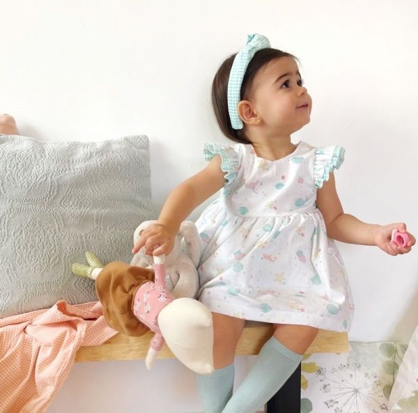 Nuestros tejidos son diseños propios , este en concreto es algodón orgánico Oeko Tek de origen nacional e impreso en España con tintes exentos de tóxicos.