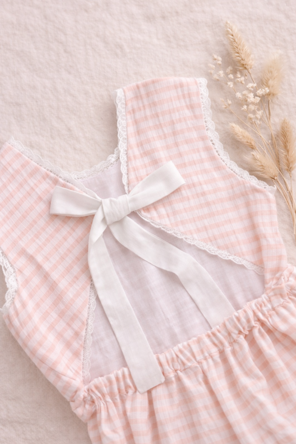 Delicada puntilla 100% algodón en cuello, mangas y espalda
